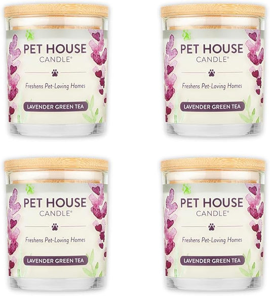 One Fur All Pet House Lavender Green Tea Candles Plant-Based/Soy Candle - Clean Burning Scented Candles, Long Lasting Pet Odor Candle for Home - 4 Pack