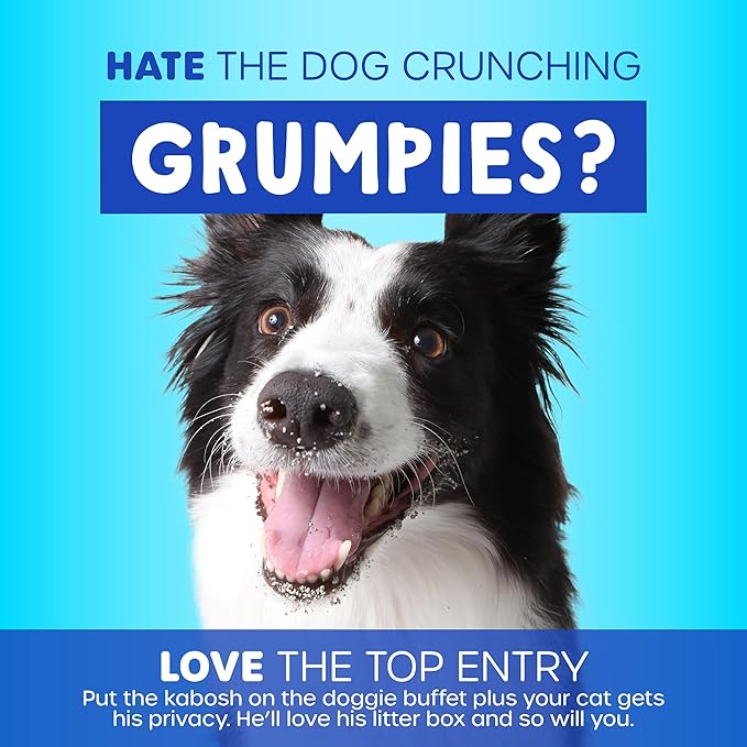 - TOP ENTRY LITTER BOX: This enclosed kitty litter box features high walls for cats' privacy. The wide, top entry design easily accommodates larger cats and has a grated surface to collect litter from cats' paws each time they exit. Non-slip textured lid with openings