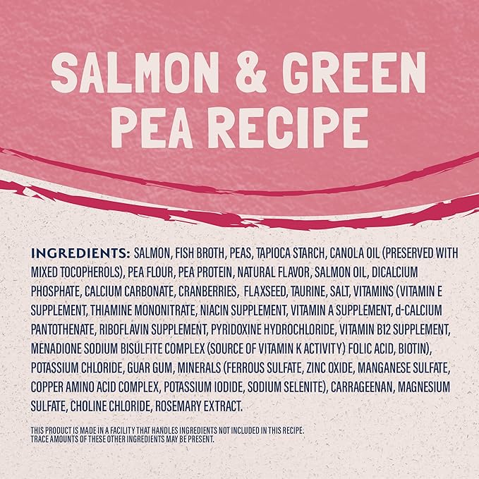 - NUTRIENTS FROM OUR SALMON & GREEN PEA CAT FOOD RECIPE crafted with nutritious ingredients such as green peas; Complete and balanced with essential nutrients to help maintain your cat's healthy immune system