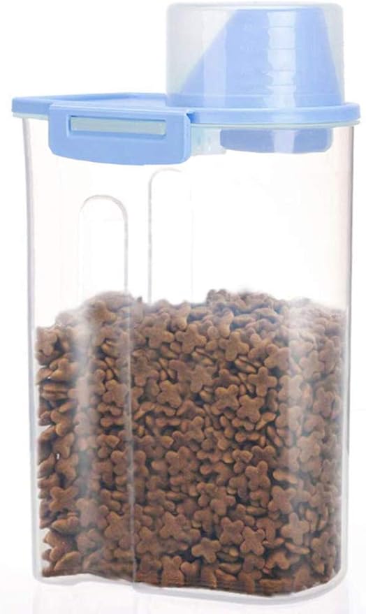 Pet Food Storage Container with Graduated Cup and Seal Buckles Food Dispenser for Dogs Cats (Blue)