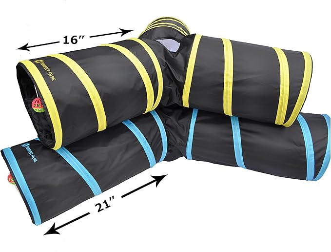 - Tunnel of Fun: Our cat playground features crackle paper, a cat ball toy, three 21 in connected tunnels and a peephole giving your cat plenty of entertainment. Suitable for other smaller pets as well