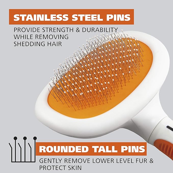 - Dual Level Pin Design – Safely aids in removal of mid to top level fur & hair as well as gently removing lower lever fur while protecting your pets’ delicate skin; large head size allows you to cover large sections of hair