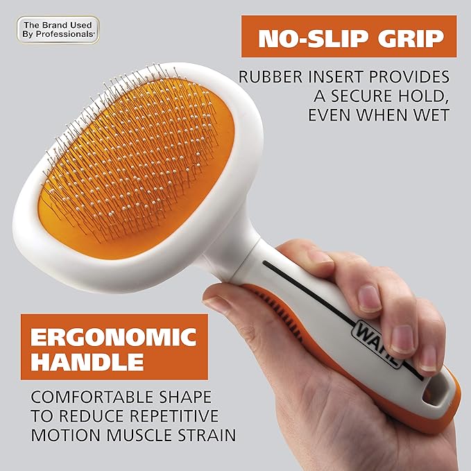Wahl Premium Patented Dual Level Sensitive Skin Pet Slicker – Ergonomic handle makes Deshedding, Grooming and Brushing Comfortable for you and your Dog or Cat - 858500