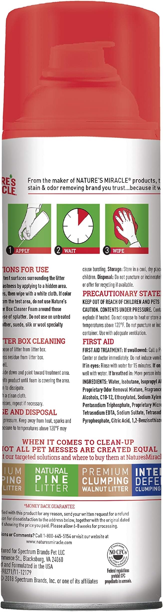 - Tough on urine & feces odors: nature's Miracle litter box foam destroys tough urine and feces odors, so pet parents can enjoy their pets without the mess they leave behind.