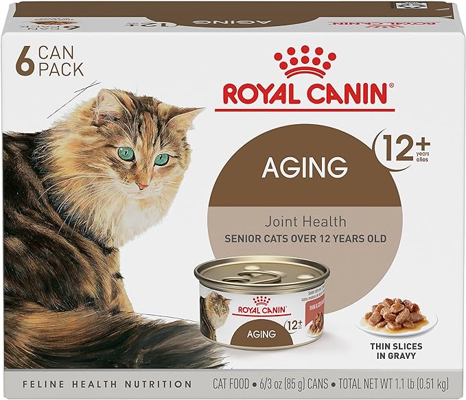 - FORMULATED FOR CATS 12+: Royal Canin Feline Health Aging 12+ Thin Slices in Gravy is wet food tailored for senior cats 12 years and older