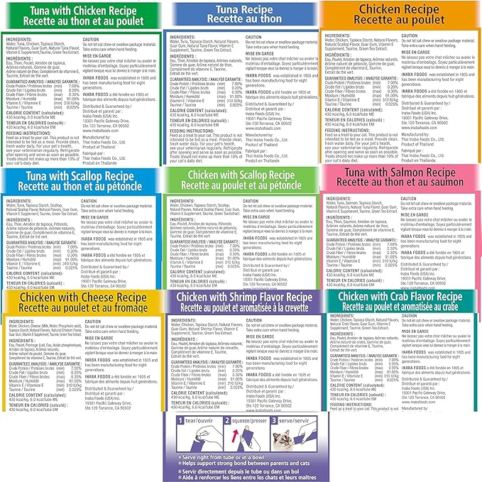 - MADE WITH WHOLESOME INGREDIENTS YOU CAN TRUST: Every Inaba product is made with yummy ingredients including farm-raised chicken and/or wild-caught tuna