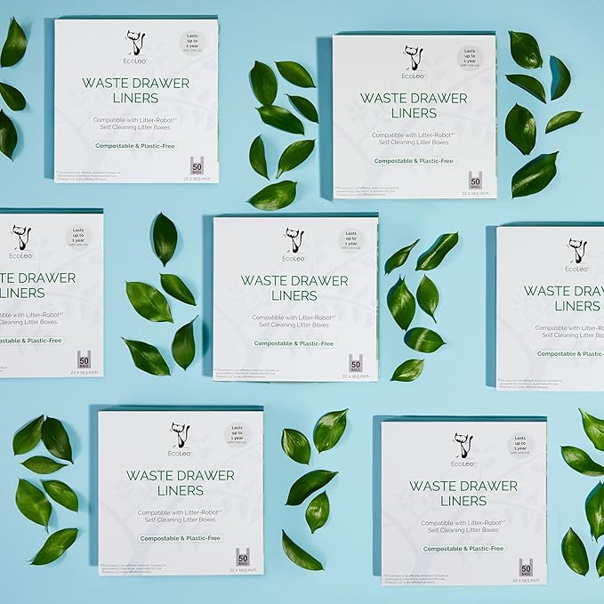 EcoLeo, Compatible with Litter-Robot 3, Plant-Derived and Plastic-free, Handle Waste Drawer Liner Bags, Thick, for Automatic Litter Box, Compatible with Leo's Loo (50-Count)