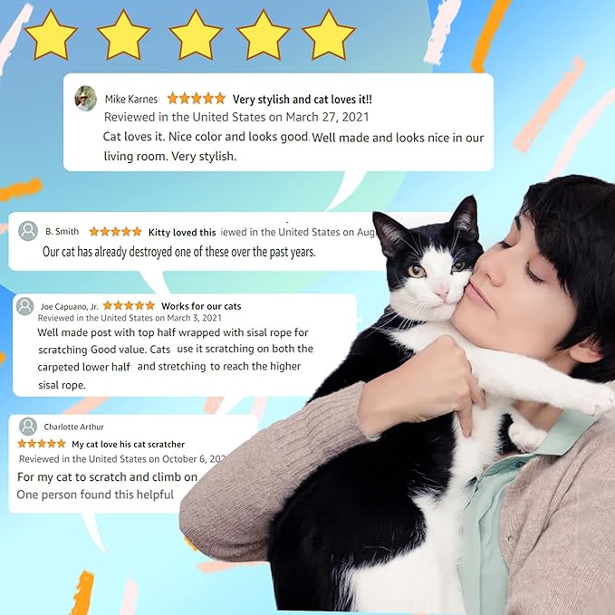 - [Safe & Eco-friendly Materials]- Our cat poles are made of natural sisal from tropical rainforest, it's safe for your cat and has better toughness and abrasion resistance, and can better resist pets' scratching. Experiment shows this natural sisal can better attract cats, perfect for your pets having fun and keep their health