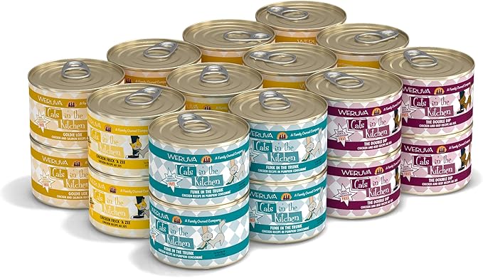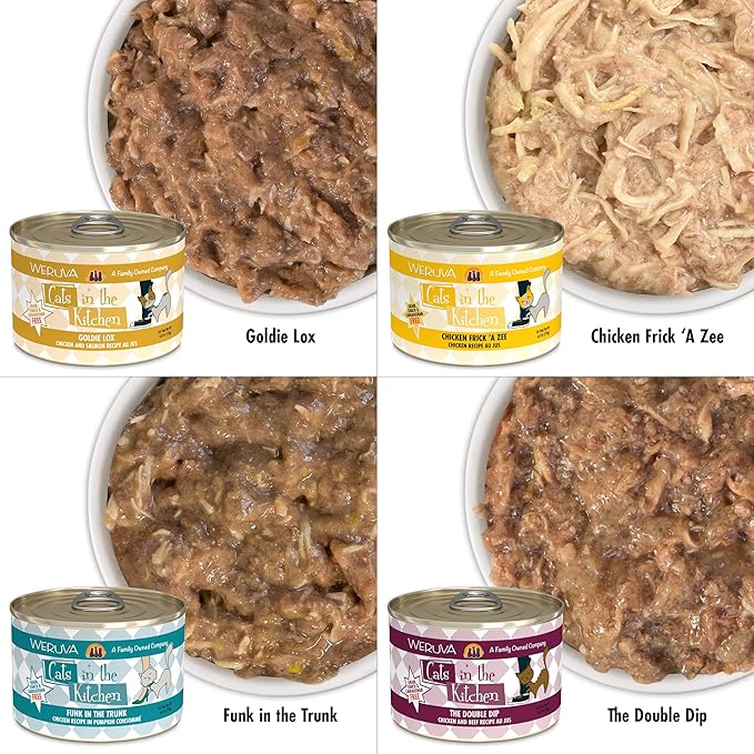 Weruva Cats in The Kitchen, Goldie Lox and The 3 Fares Grain Free Canned Cat Food Variety Pack, 6oz Can (Pack of 24)
