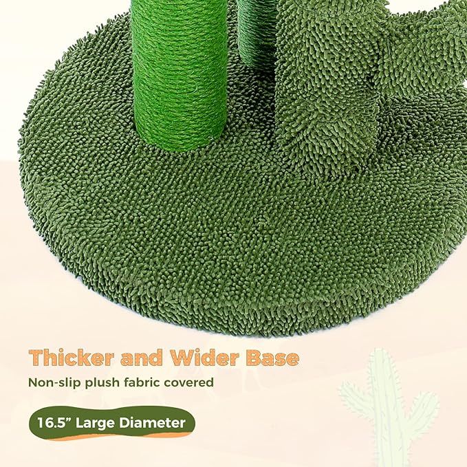 - Unique Design: This Cat scratching post with 3 scratching poles covered with green natural sisal and carpet standing on the round base like a mimic cactus looks cute and fresh that help blend into any modern decor and add fun flair to any room.