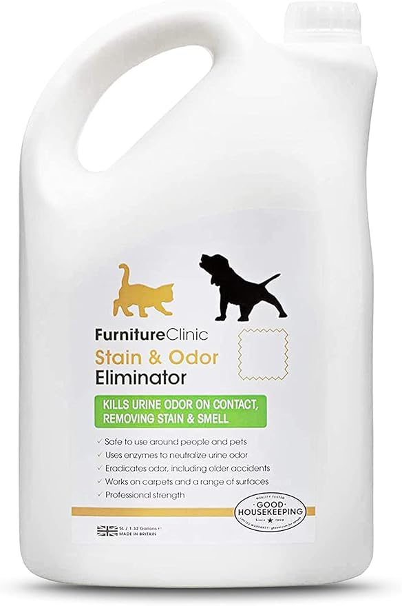Furniture Clinic Stain & Odor Eliminator | Pee & Vomit Smell Removal for Dog, Cat, Pet and Human Messes & Accidents | Enzyme Activated Spray | Use on Furniture, Carpet, Mattresses & More (5L / 169 Oz)