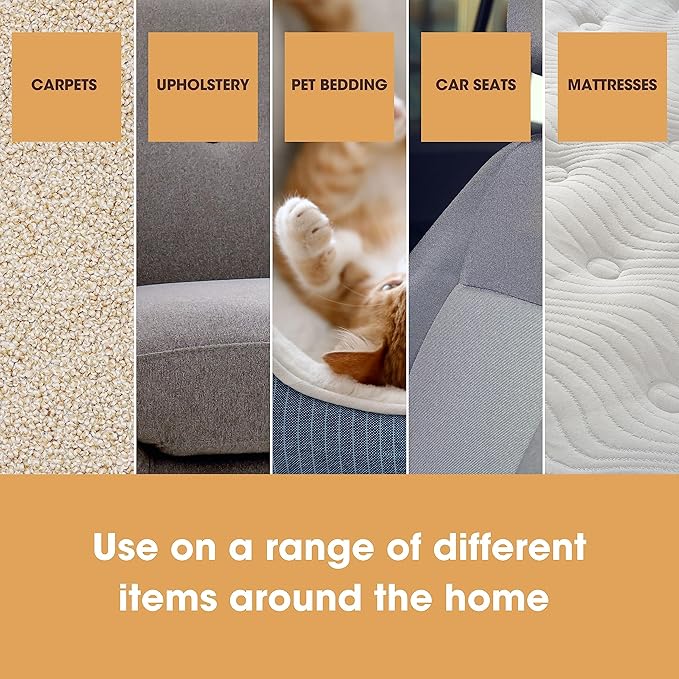 - WORKS ON MULTIPLE SURFACES: Not only is this a great pet stain carpet cleaner, but it is also an effective pet odor eliminator for your home as it works on Mattresses, Clothing, Leather, as well as multiple other surfaces