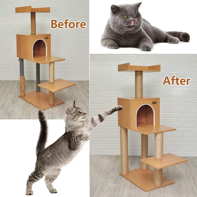 - You can refurbish scratching post by repairing and replacing the worn-out sisal scratcher. Sisal/Jute ropes suit for cat tree, cat tower and scratch carpet/cushion/mat/pad, and making cat's kicker toys. Incoming with a cat sisal ball toy as gift, random color.