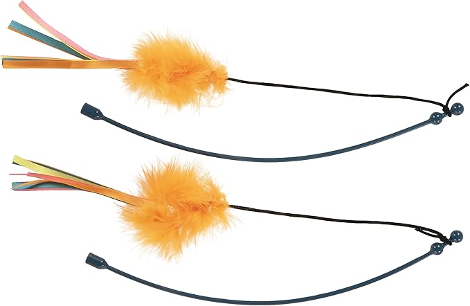 - FUN & PLAY: Bright feather plumes and colorful ribbons dangle from two springy wand toys, enticing cats; they spin when swiped or swatted at to keep felines engaged