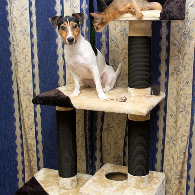 Sisal Rope 6mm for Cat Scratcher Repair and Replace Cat Scratching Post, DIY Scratching Furniture - Cat Tree, Scratch Carpet & Mat, Cat Kicker Toys, Black 164ft/50m