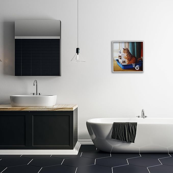 Stupell Industries Litter Box Reading Funny Cat Pet Painting, Design by Lucia Heffernan Gray Framed Wall Art, 17 x 17, Multi-Color