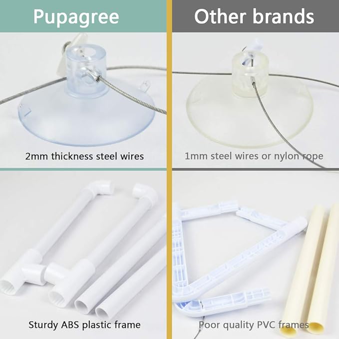- √Sturdy and durable - Thicker ABS plastic frame, 2mm strong steel wire and 3" heavy duty scution cups, these premium design make the cat window perch hold up over 40lb and always stay well on window.