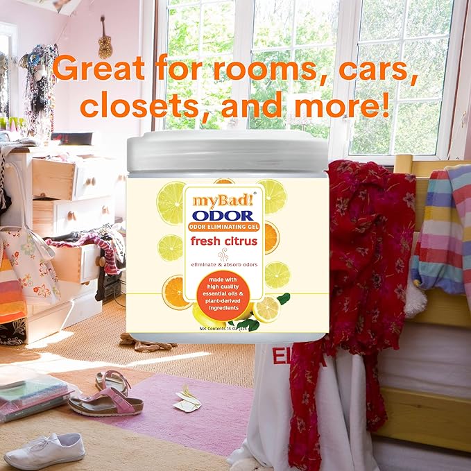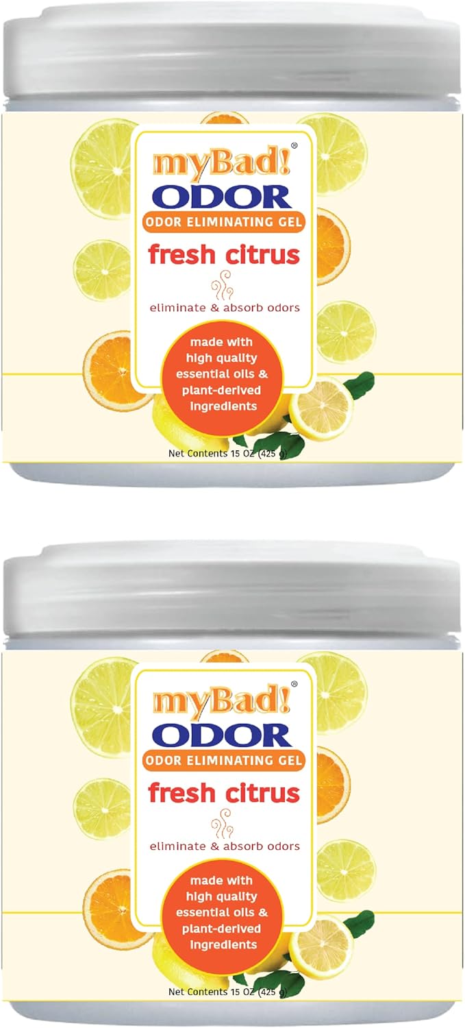 Odor Eliminator Essential Oil Gel 15 oz - Air Freshener - Eliminates Odors in Bathroom, Pet Area, Closets, RVs, Pet Areas (Fresh Citrus, 2 Pack)