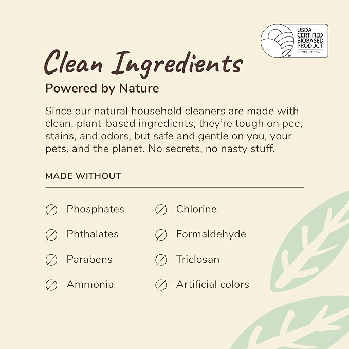 - PROFESSIONALLY FORMULATED: Each and every ingredient is chosen and approved by our in-house vet and chemist to ensure exceptional efficacy while being safe for your pets. Our cleaning products are made with natural and renewable resources and no harmful chemicals. That means it's good for your pets and for the planet!