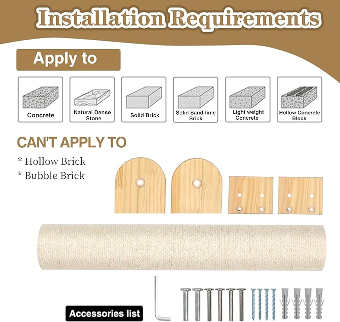 - 100% Real Wood Cat Scratching: The 21-inch cat scratching post is made of sisal rope and solid wood, eco-friendly materials that are absolutely safe for people and pets with high quality mounting brackets, very stout and stable, avoid wobbling, provides reliability and stability can be used for many years. Since it is natural wood, each has nuances