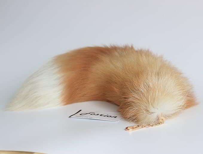 Fosrion Real Fox Tail Fur Hair Cat Bites Catching Hunting Toy (Orange, Only Tail)
