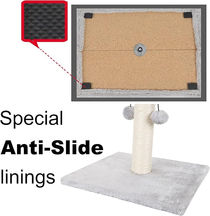 - [Natural] Scratching Post Tree is made with thick cardboard tube and wrapped with natural fibrous sisal; base tower are made with heavy chipboard covered with soft plush, safe and stable, avoid tipping and wobbling, provides reliability and stability, wooden material , handmade