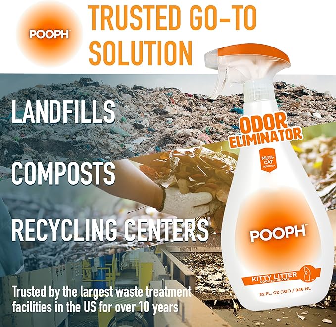 - EFFORTLESS CLEANUP: Enhance your litter box routine with the POOPH Kitty Spray - Odor Eliminator. This powerful cat odor eliminator makes litter box cleanup a breeze while making the surrounding areas of your litter box smelling fresher!