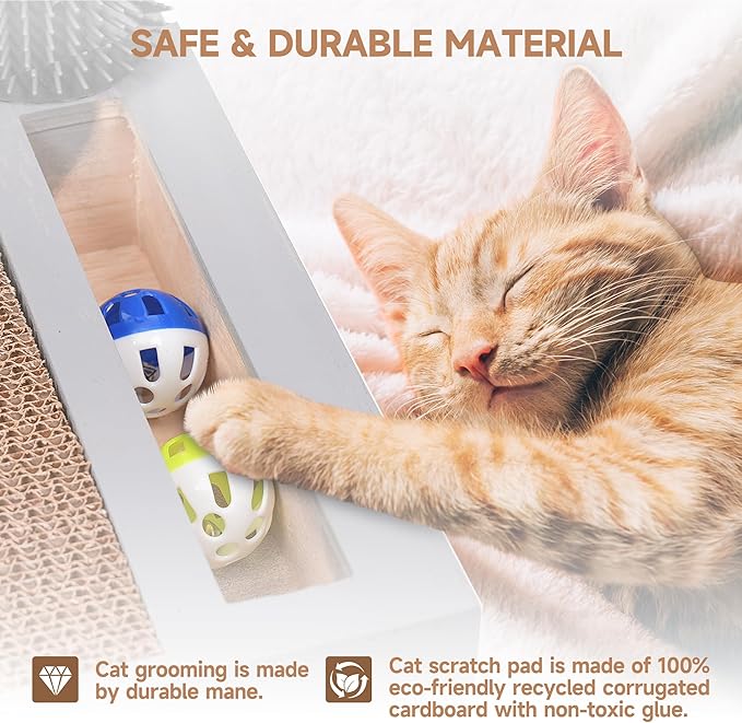 - šāā¬Safe & Durable Material : This cat grooming is made by durable mane,cat scratch pad is made of 100% eco-friendly recycled corrugated cardboard with non-toxic glue. Completely healthy and safe for your adorable cats.