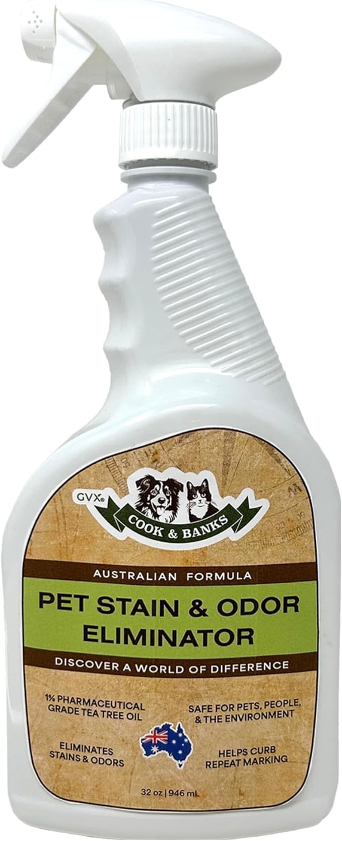 GVX Cook & Banks Pet Odor Eliminator - Pet Carpet Cleaner Spray - Dog Urine Cleaner & Cat Spray Deterrent - Dog Pee Spray & Cat Urine Deterrent - Dog and Cat Pee Cleaner - Hard Floor Cleaner - 32 oz