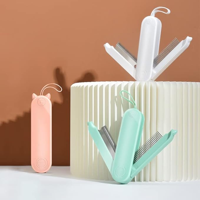 2-Sided Pet Grooming Brush for Dogs & Cats, Self-Cleaning Sliver Brush for pet - Comb for Grooming Long Haired & Short Haired Dogs, Cats, Rabbits & More - Deshedding Tool, Cat Brush (White)