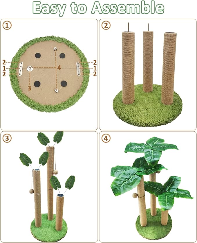 - Shakeable Sisal Balls: Palm tree cat scratching post is equipped with 2 hanging sisal balls to fulfill feline’s hunting instincts and induces them to keep tapping, releasing their nature. Save your furniture from pet clawing