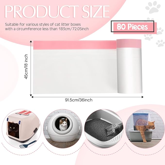 - Package Includes: you will get 80 pieces of large litter box bags, measuring about 36 x 18 inches, suitable for cat litter boxes with a circumference less than 183 cm/ 72.05 inch, sufficient quantity is enough to meet your pet's daily use and replacement needs