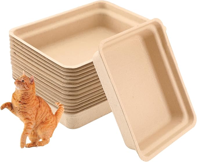 Disposable Cat Litter Box(15 Pack of Trays)(Suitable for Cat, Hamster, Guinea Pig, Mice, Rabbit Eco Friendly 100% Recycled Paper Trays,16.7 * 13.4 * 4.0Inches