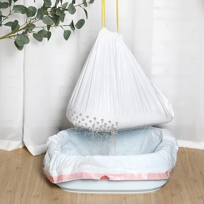 - Portable Design: each litter box liner is lined with a sturdy drawstring for easy operation, you just need to grab the drawstring, lift it and the bag will tighten itself, ensuring that the cat litter will not spill out and stain your litter box, suitable for cat litter boxes with a circumference less than 62.2 inch/ 158 cm