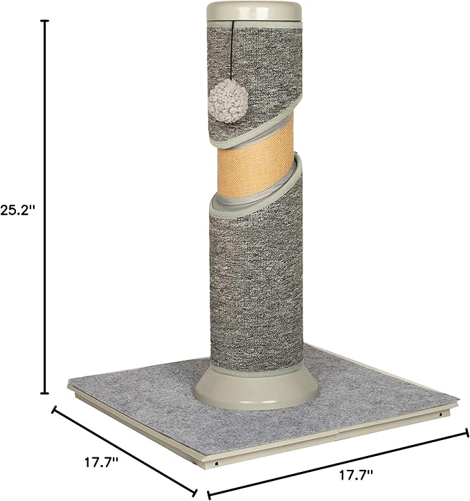 - DURABLE DESIGN: Scratching post is made with a thick cardboard tube, wrapped with thick carpet and natural sisal mat. Base is made of plastic, covered with felt mat for cats to rub and nuzzle.