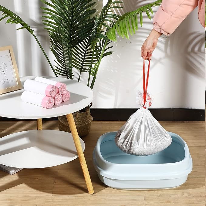- Drawstring Design: the cat litter bags adopt drawstring design, which is convenient to operate, you just need to grab the strap and lift it, and the bags will tighten automatically, which ensure that the litter will not spill and stain your litter box