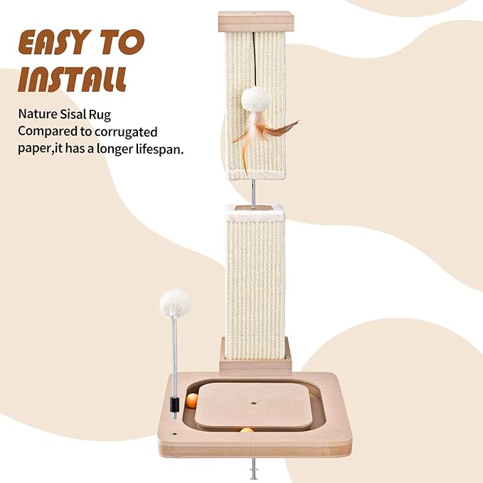 - 😺[Extra Fun] Combine the scratching post with plush balls and interactive tracking balls gives extra attraction to cat, will draw the cat away from the furniture. Helps keep your cat from damaging carpets, furniture, curtains.