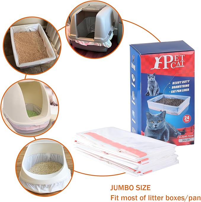 Jumbo Cat Litter Box Liners with Drawstring, 24 Count Extra Thick and Durable Litter Box Liner Bag Disposable Waste Bags for Home/Kitchen Trash Cans (36" x 18")
