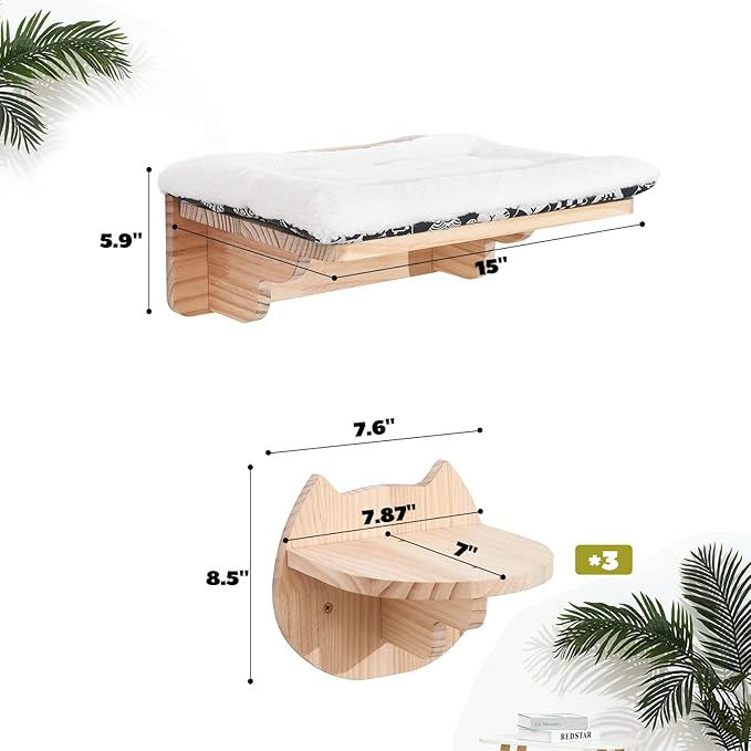 - Cats own a natural habit of climbing up high.This set of cat shelves take only small places on your wall but supply great fun for cats to climb sleep rest and release their stress.Keep cats away from ground to avoid dogs if you have.