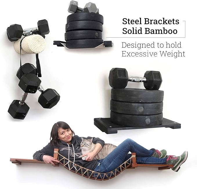 - Durable & Sturdy Build Our latest collection of wall scratchers for indoor cats utilizes sustainable bamboo for durable and water-resistant construction that is weight tested up to 70 lbs. Every detail of the wall mounted cat scratcher is fine-tuned: hidden brackets for a floating look, hand-crafted sisal rope, and a fine, clean finish.
