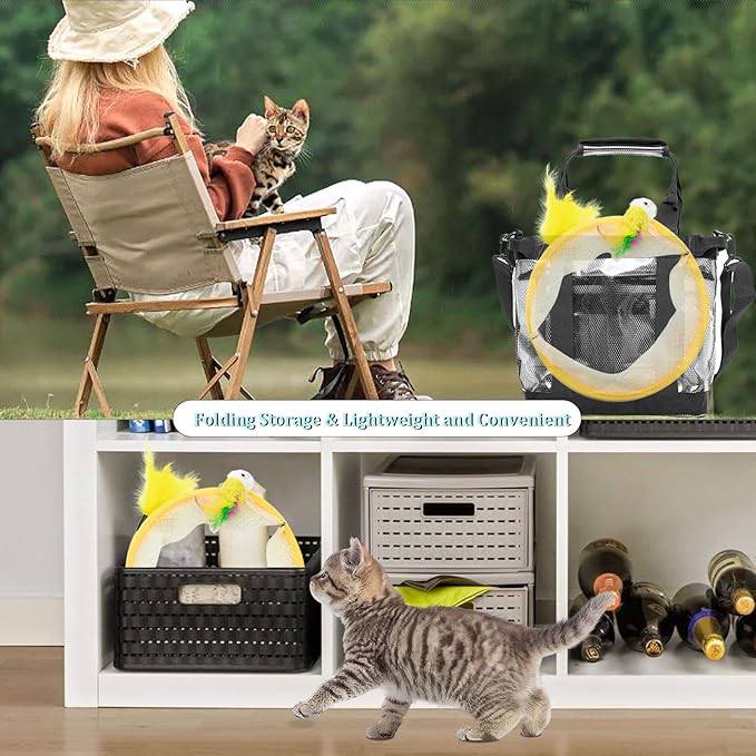 - Foldable and Portable: The cat tunnels is lightweight, easy to store, and convenient for on-the-go to played. When not in use, cat tubes and tunnels can be effortlessly folded, saving space. This engaging cat play tunnel is travel-friendly, ensuring your pet gets bored.