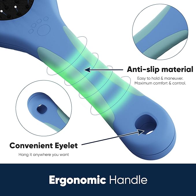 - Efficient Detangling: Easily detangles mats, removes loose fur, and reduces shedding, making it an essential dog brush for maintaining a healthy coat.