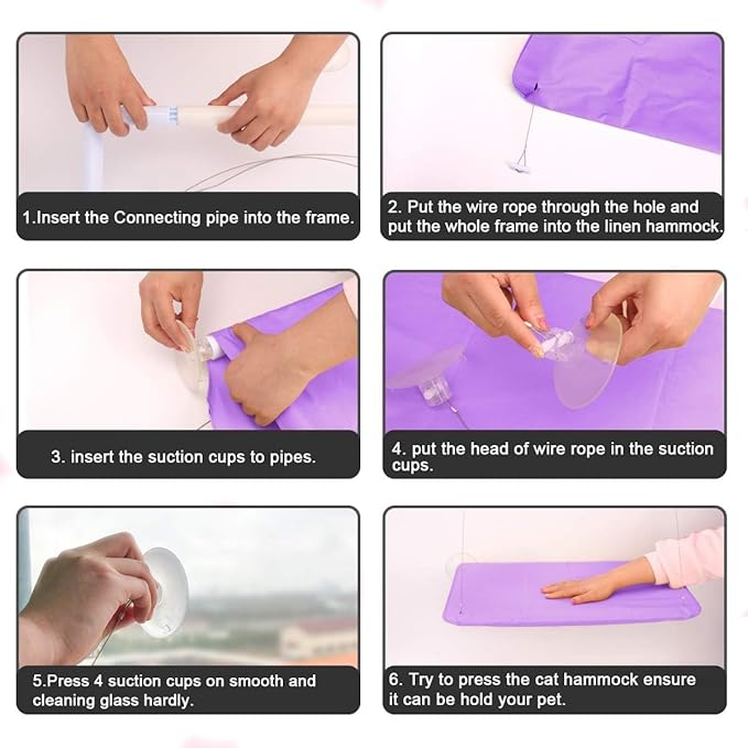 - Installation: Before using the suction cup, you can soak the suction cup in warm water for a few minutes to increase the stickiness of the suction cup, then wipe it clean, stick it on the window without dirt or grease, and the installation is complete. If you want to change the place and reuse cat window bed, just remove it and follow the above method again.