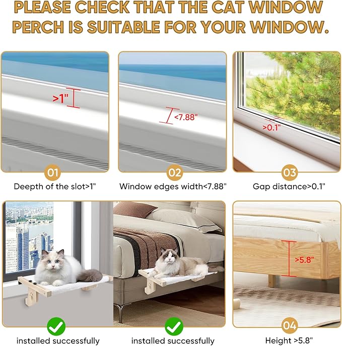 - 【 Versatile Usage】Our window cat perch is not limited to just window sills. It can also be placed on bedside tables, allowing you and your cat to enjoy quality time together while keeping your bed free from cat hair. Additionally, it can be placed on drawers or cabinets, offering additional possibilities for your cat's leisure.