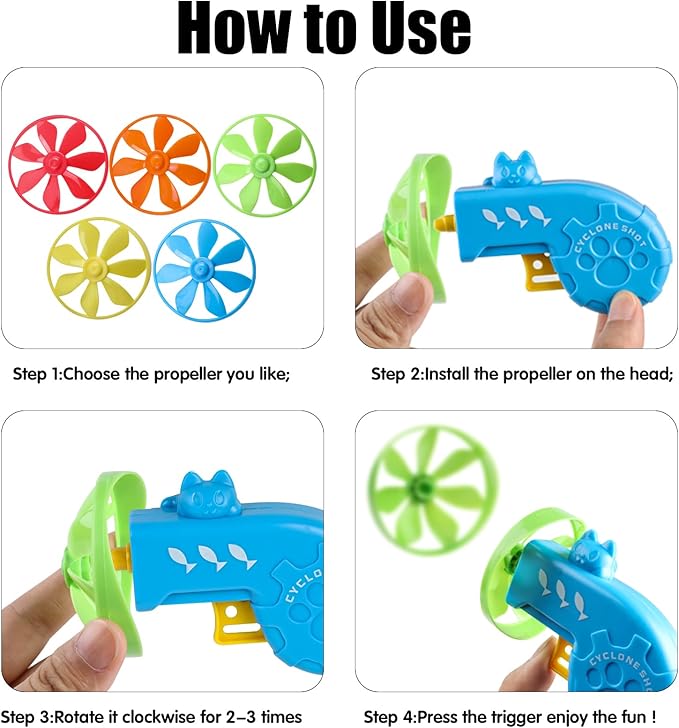 - Package Includes:2 interactive cat launchers and 15pcs flying propellers in 5 bright colors are included in one set.Great fun for your kittens.