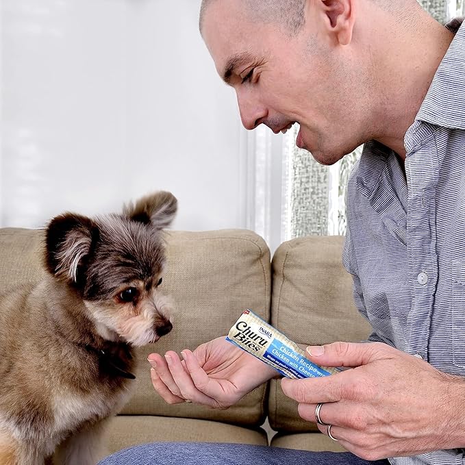 - TWICE THE TEXTURE: Each pillow-shaped bite starts with a soft baked chicken paste with no grains, preservatives, carrageenan or artificial colors. Then we've filled the centers with Inaba's delicious Churu filling to give your pup two types of texture