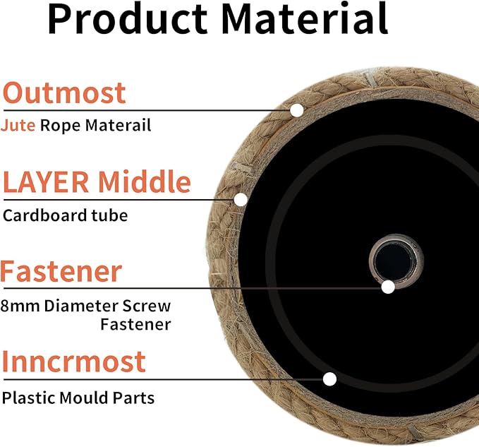 - Durable Material: Scratching posts replacement is a strong cardboard tube inside and wrapped with hemp rope outside. The cat tree rope is made of natural sisal, which is wear-resistant and durable, allowing cats to sharpen their claws without dropping crumbs and keeping the room clean