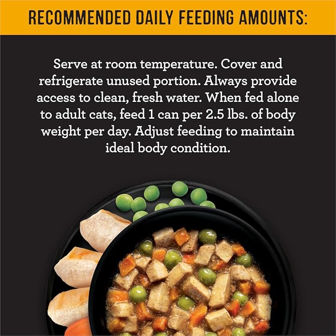 - Inspired by gourmet recipes and crafted to provide nutrition and hydration for cats, this moist chunks-in-gravy cat food contains a holistic blend of chicken, carrots, and peas in a delicate gravy