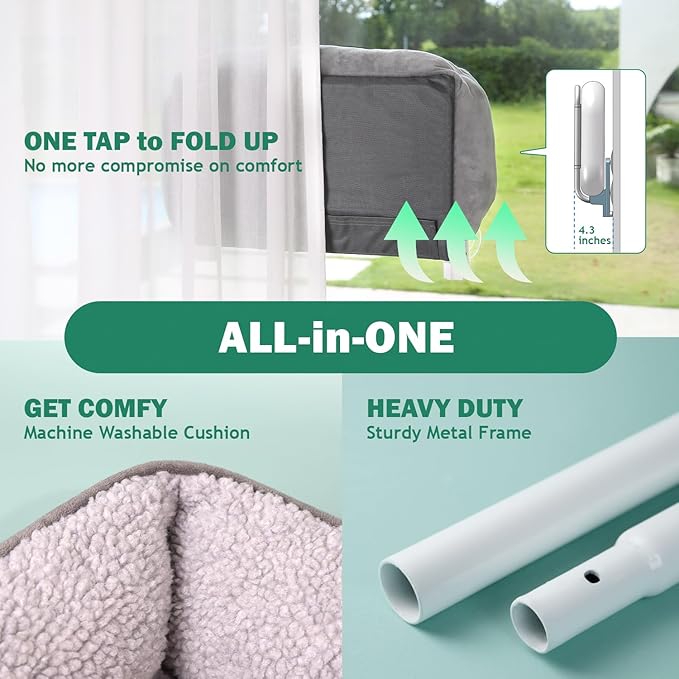 - 【Foldable Convenience】Effortlessly folds up, allowing for curtain closure, easy storage and transportation. Set it up in seconds and fold it away when not in use, without compromising on your cat's comfort. Distance from window when folded: 4.3 inches.