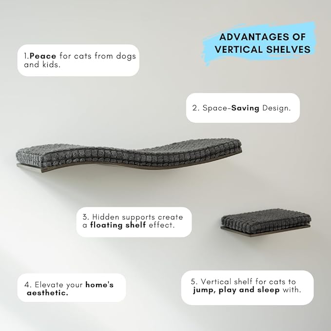 - Space-Saving Design: Free up floor space from cat tower and maximize your room by using wall mounted shelf vertically! Our cat wall bed is cat tree that creates more room for you and endless entertainment for your feline. Vertical cat house.